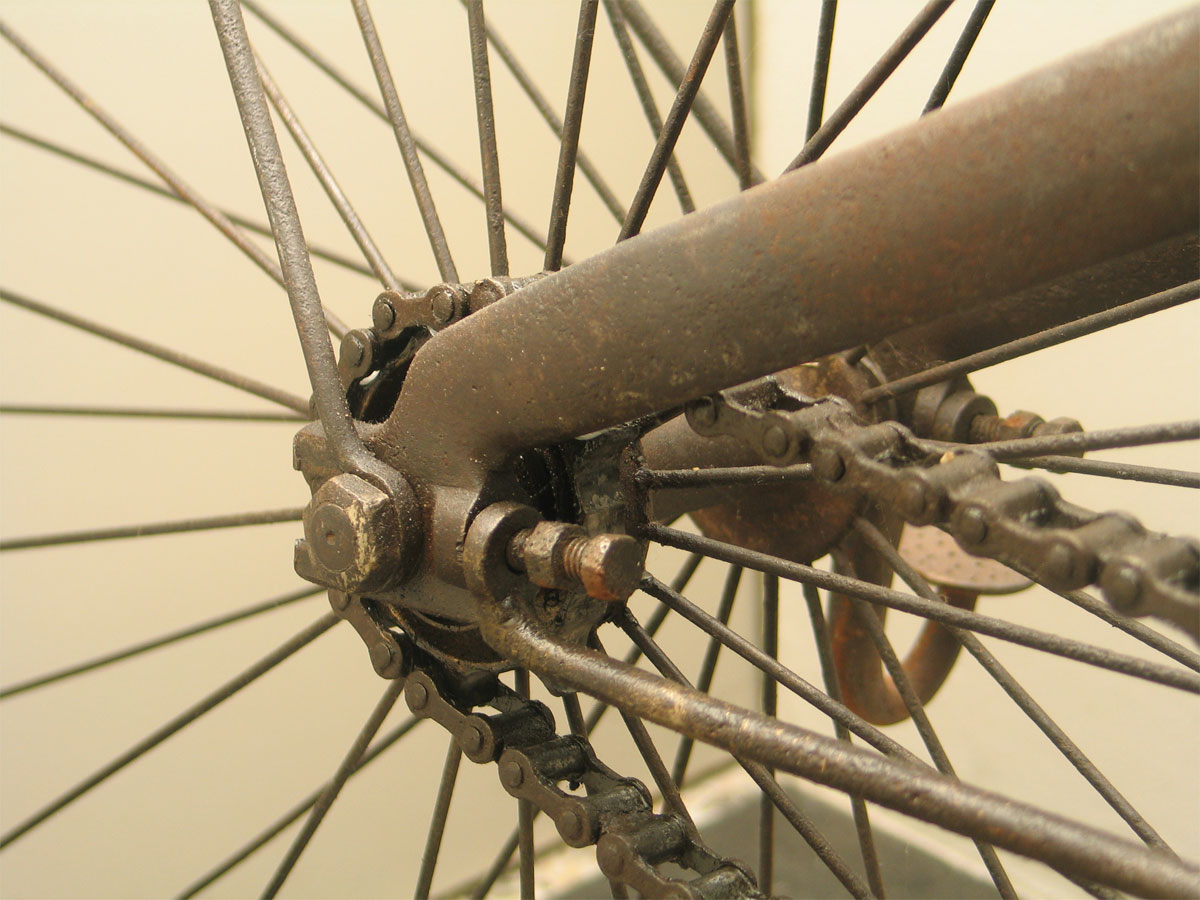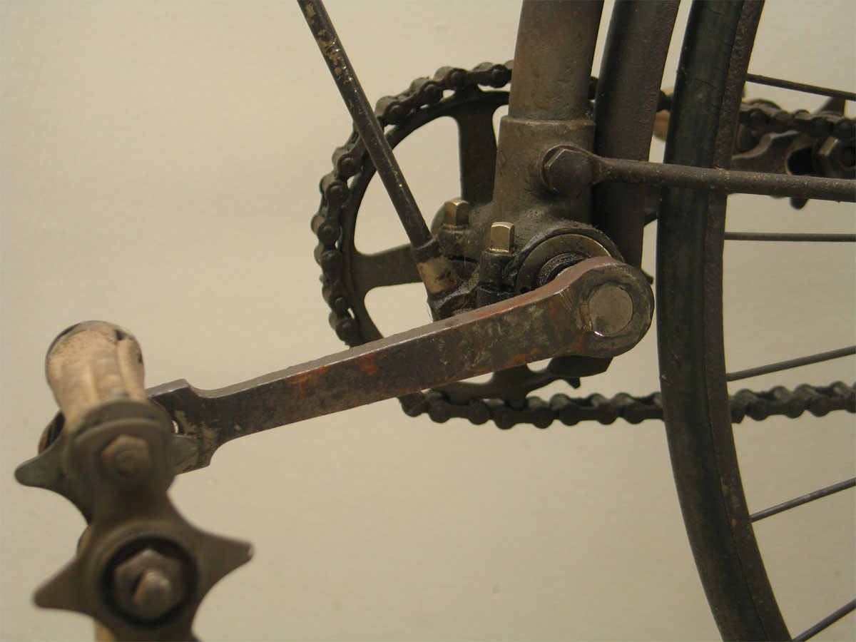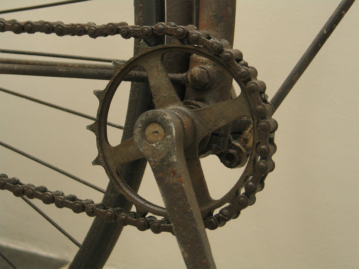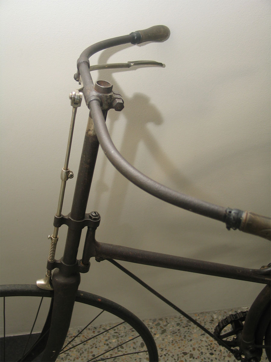 Characteristic frame enforcement and a lot of beautiful details. Look at the very interesting way to adjust the handlebars. Not safe at all, if you crash this safety bicycle ...